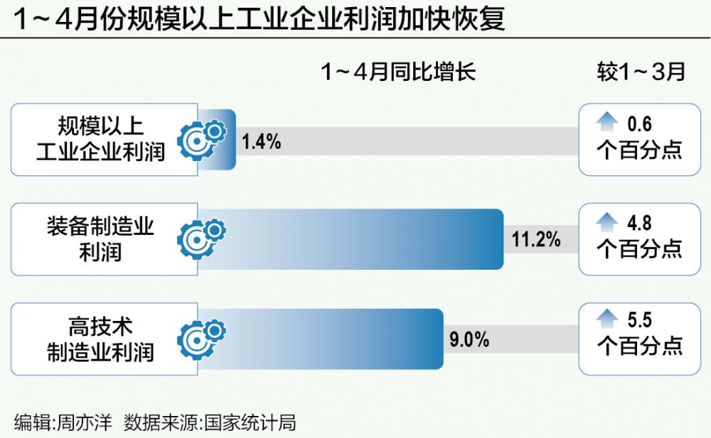 1~4月份,规模以上工业企业利润增长1.4%,较1~3月份加快0.6个百分点尚求100,延续恢复向好态势。4月份,全国规模以上工业企业利润同比增长3.0%,较3月份加快0.4个百分点。