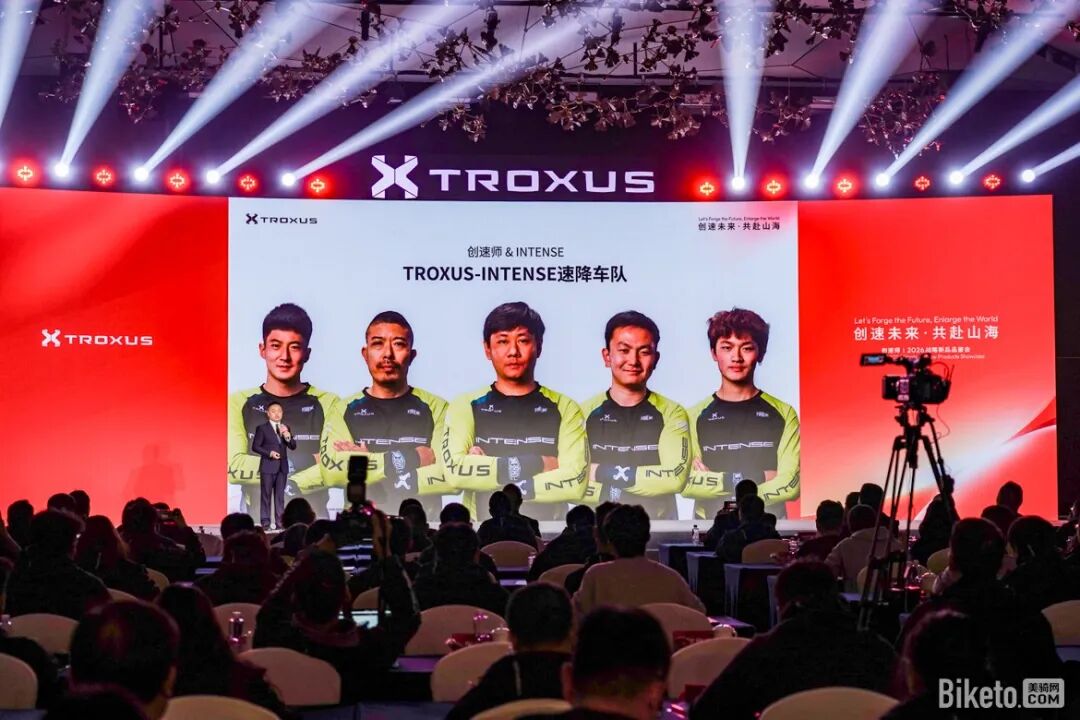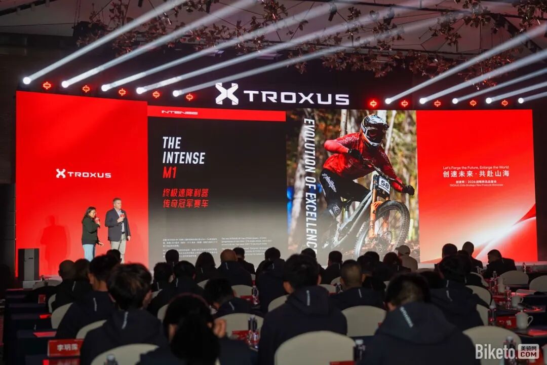 1月15日,飞神集团旗下骑行品牌创速师TROXUS在其总部举行了2026战略新品品鉴会。发布会现场行程紧凑信息量大,各地前来的经销商、媒体、车手等合作伙伴齐聚一堂高朋满座。在众多的品鉴会议程中,最受国内山地车爱好者关注的当属TROXUS与知名山地车品牌INTENSE正式宣布战略合作,并现场签约风头正盛的年轻速降车手涂玄州。