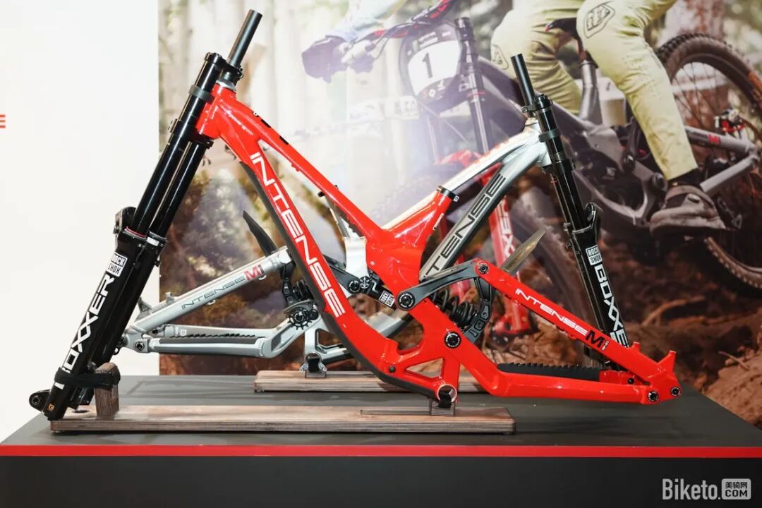 全新INTENSE M1采用6连杆高转点设计,车身为6061-T6铝合金车架,配备203毫米(线性)/212毫米(渐进)后避震行程及采用279英寸混合轮径规格。车架提供红色与钛灰两个颜色,S到XL共4个尺寸可选。